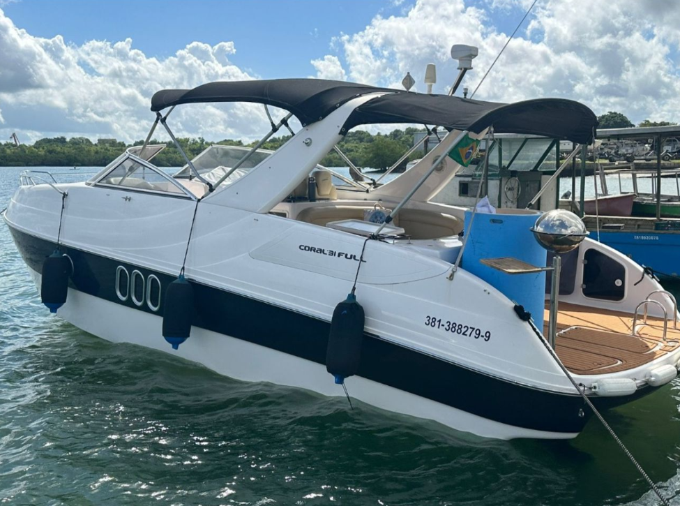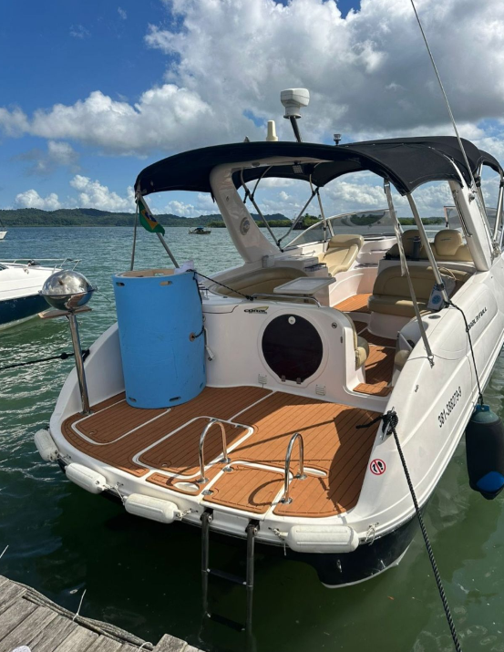 As imagens utilizadas são meramente ilustrativas. As fotos representam lanchas da mesma categoria, podendo ou não ser o modelo exato disponível no momento da reserva. A disponibilidade será confirmada no ato do agendamento.